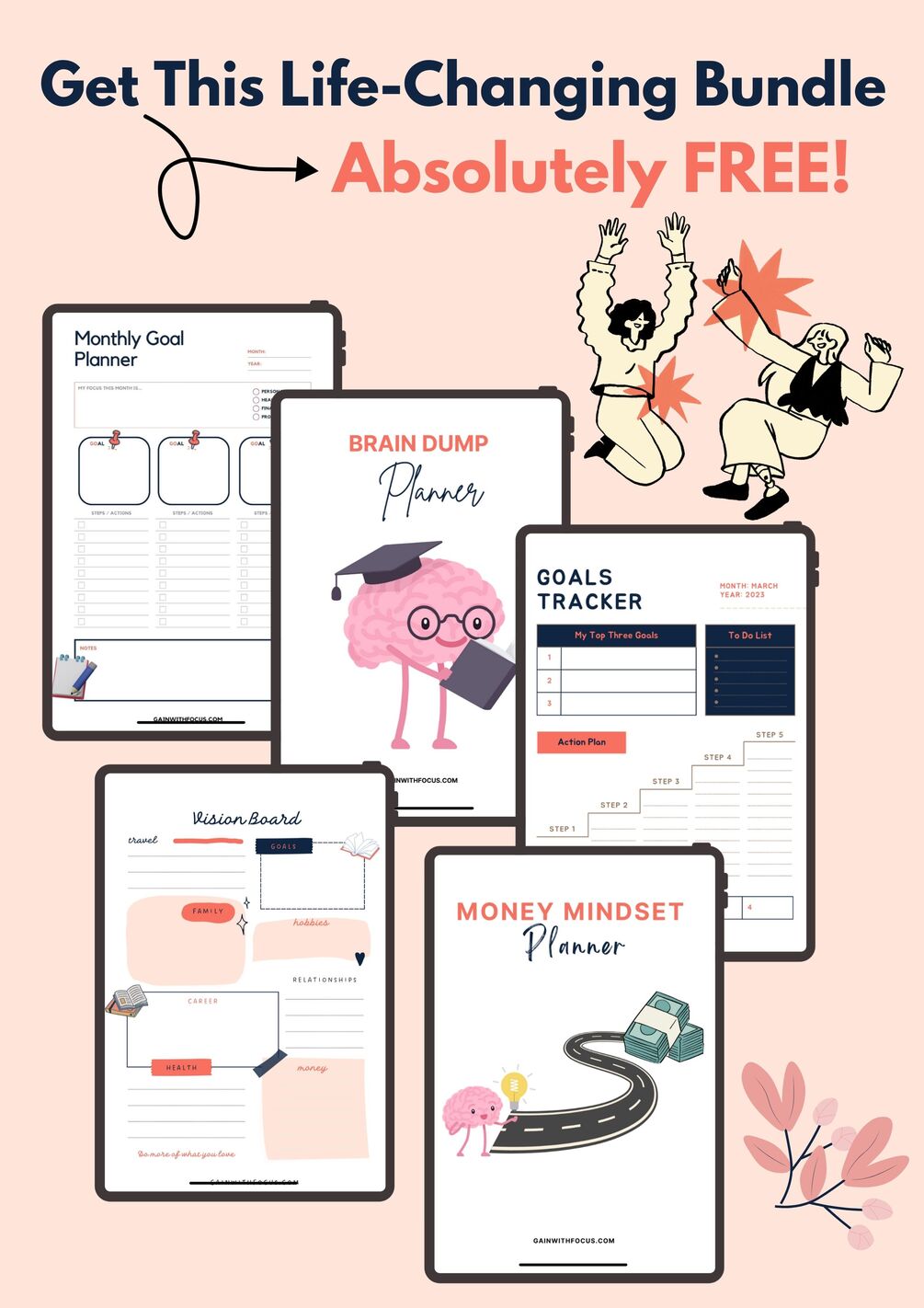 Are you ready to take control of your life, finances, and dreams? This FREE digital planner bundle is designed to help you stay organized, set meaningful goals, and develop the money mindset you need to thrive. Download this powerful bundle today and start your journey to financial freedom and success!